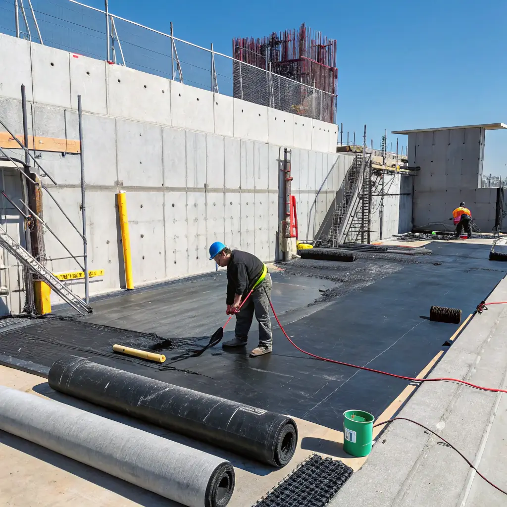 Additional treatment is provided at expansion joints, service entries, and foundation pits to ensure complete coverage.